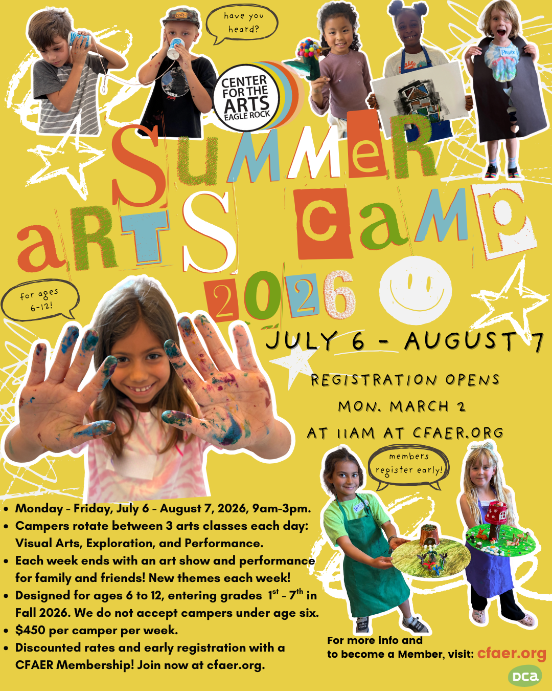 The mission of Center for the Arts Eagle Rock (CFAER) is to provide unfettered access to the transformative power of the arts by sharing multidisciplinary arts programming for all-ages and abilities in celebration of each other's skills, creativity and dignity.